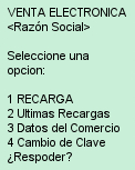 Aparecerá un menú de venta electrónica, en el cual se debe seleccionar Recarga. |