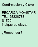 Se presentará la información de la recarga. Si la información es correcta, se debe indicar la clave asociada al terminal |